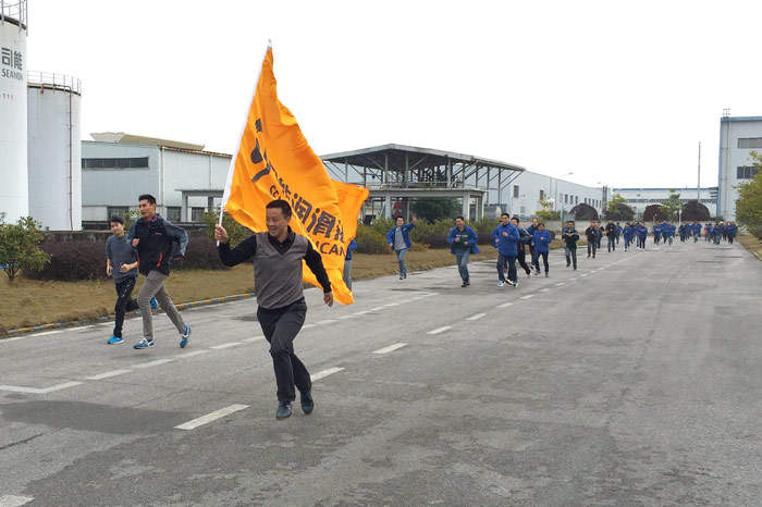 ? ? ? ?下午15:30,公司領(lǐng)導(dǎo)帶頭在橫幅上簽名,參加活動(dòng)的員工紛紛簽名并寫下祝語,有祝公司業(yè)績蒸蒸日上,也有希望個(gè)人工資翻倍、身體倍棒、吃嘛嘛香等不同的寄語。隨后進(jìn)行的迎新跑步活動(dòng)將氣氛推向高潮。員工們意氣風(fēng)發(fā),迎著新希望邁步向前沖,個(gè)個(gè)以勝利手勢(shì)沖向終點(diǎn)。