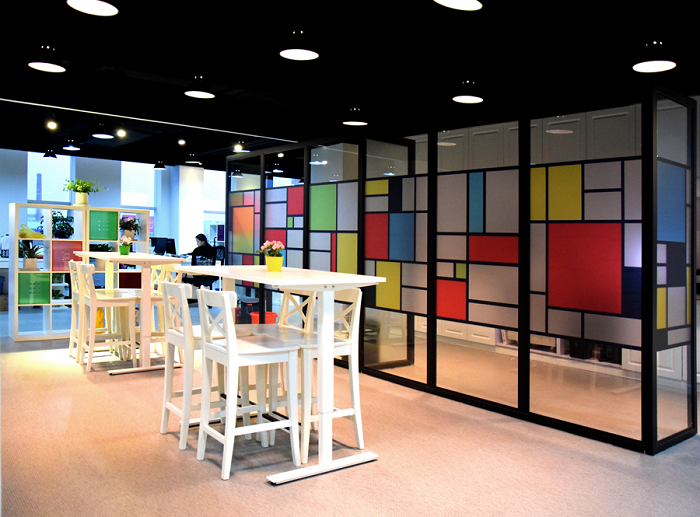 ? ? ? ?工業(yè)氣息濃郁的黑色墻頂,簡(jiǎn)潔干凈的白色墻面及柔和的灰色地面,構(gòu)成了寬敞現(xiàn)代的空間,繽紛的果凍色彩軟裝點(diǎn)綴,更符合上海的都市氣息。